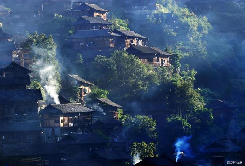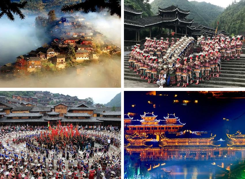 郎德苗寨群山环抱的风情村落,它是“中国民间艺术文化之乡”