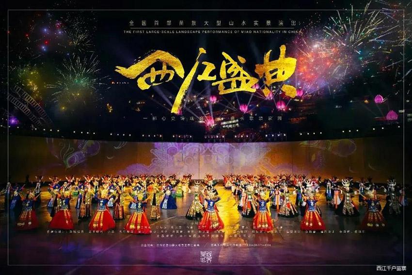 《西江盛典》依托雷山县大塘景区短裙苗之乡、铜鼓舞发源地的苗族自然风貌和苗族民俗风情,全国首部苗族大型山水实景演出。