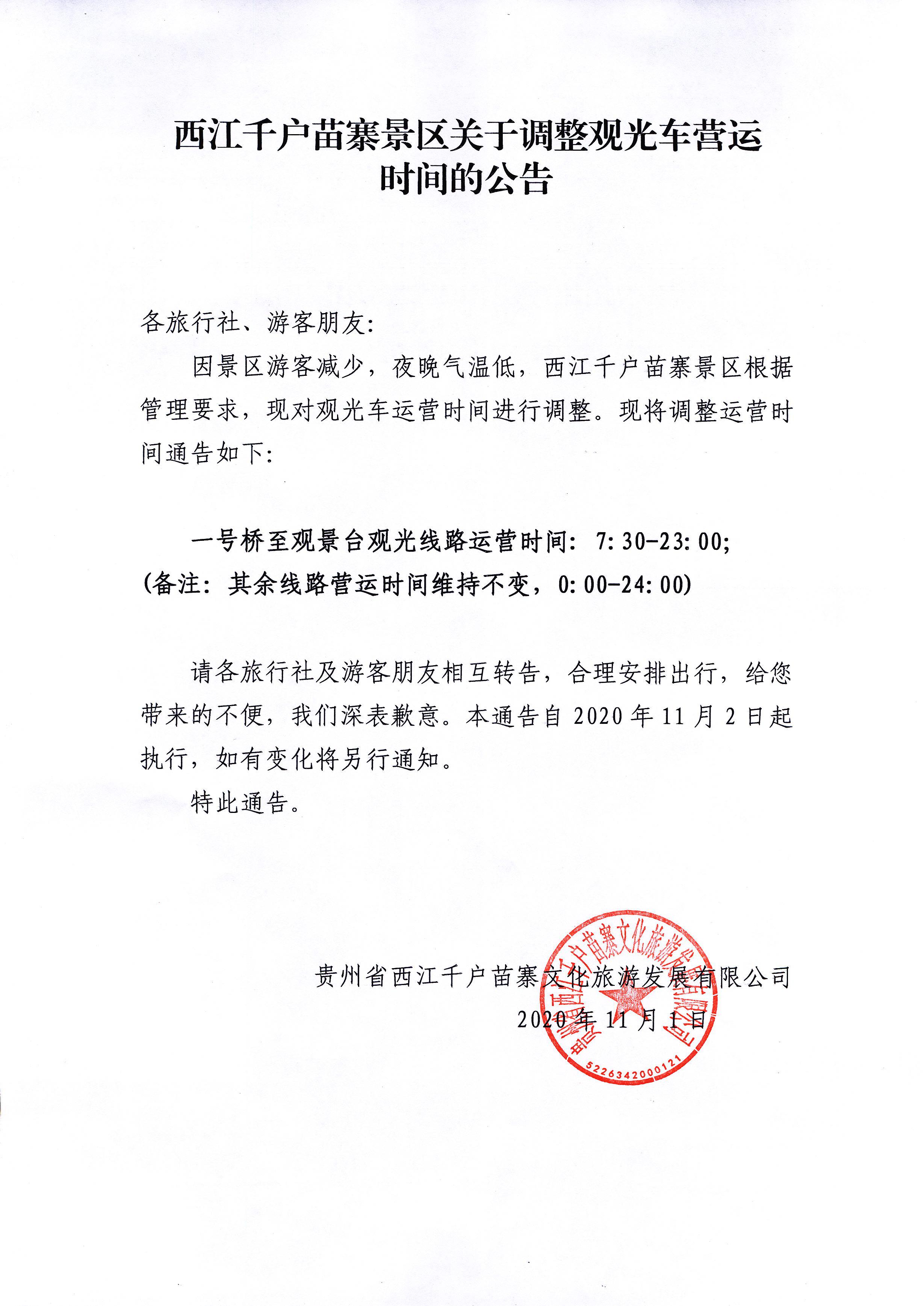 走进西江千户苗寨景区关于调整观光车营运时间的公告