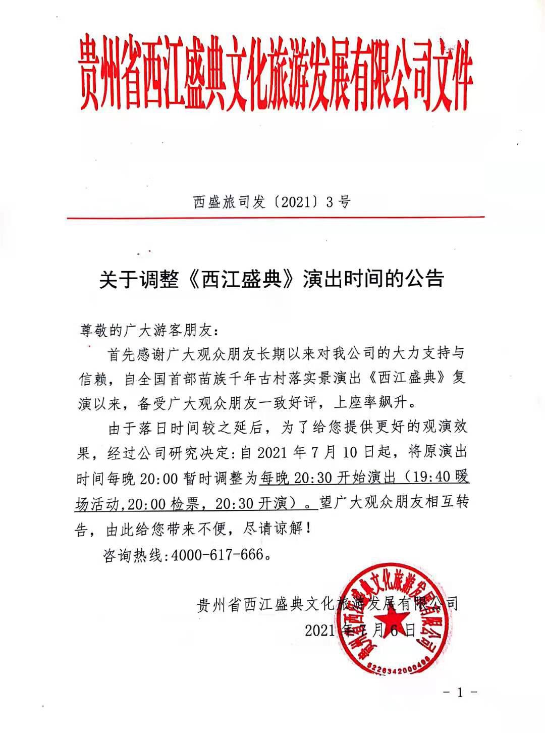 关于调整《西江盛典》演出时间的公告