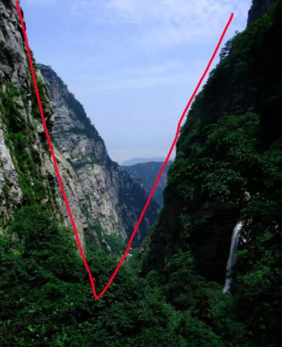 流水侵蚀的河道一般会形成V形峡谷,黄果树大瀑布下游河道为什么会出现特殊的箱形峡谷呢?这或许会和大瀑布的成因有关?