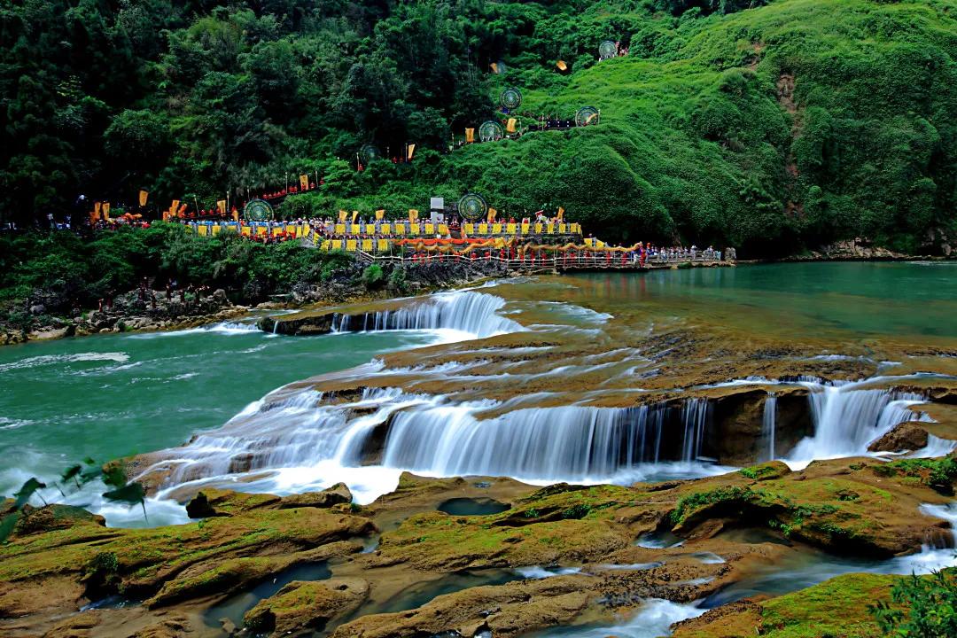 河水悬挂在一阶阶崖壁之上,形成了18个形态各异的瀑布,好似一座天然的“瀑布博物馆”。