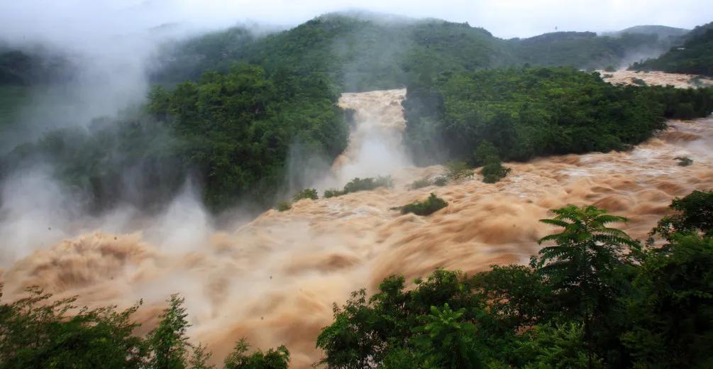 每年5至8月是黄果树瀑布群的丰水期,没错,就是现在。前不久,一阵持续的降雨,一场如约而至的汛期,为飞瀑们补给了极为充沛的水量。