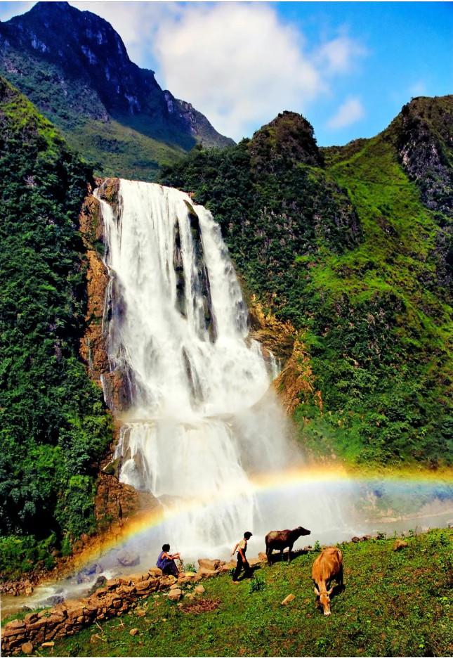 不同河水顺着阶梯式地势而下,河床断落,中断了前路,于是奔涌的水流在断崖处乘着风一跃而下飞入深渊,于是成就了一场华丽的变身。
