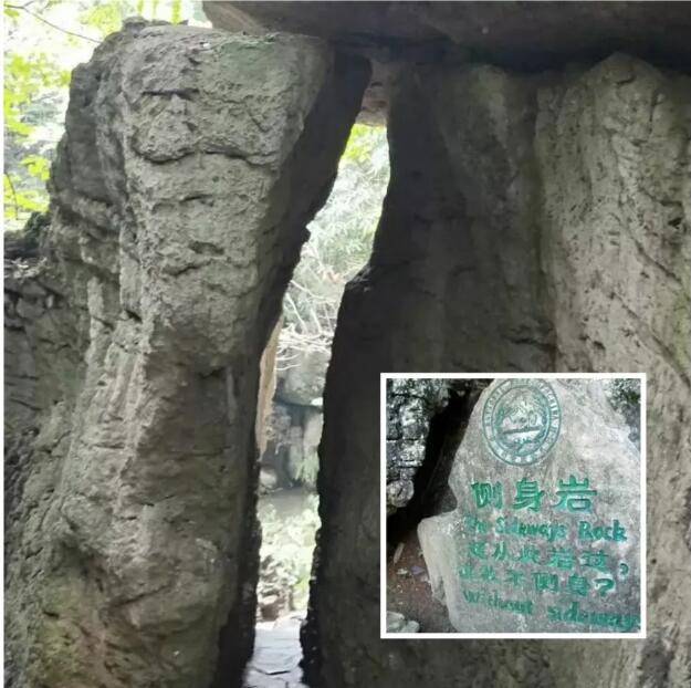 据说此处是“大肚难过”的一处关口,成年人只能侧身而过,十世班禅大师那么胖,八十年代他游天星景区时施展“收腹”奇功,居然轻松过了“大肚难过”之关。