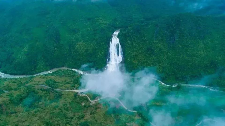 滴水滩瀑布挂在关索岭大山上,由三个大瀑布和几十个中小瀑布组成,上为连天瀑布(离关岭县城5公里),中为冲坑瀑布,下为高滩瀑布,集高、大、多、美、奇诸多特点一身,总高度和个体都为黄果树瀑布群之首。