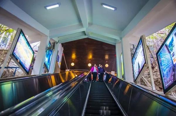 扶梯分为上下两道,总长为170米,提升高度80余米,是目前亚洲最大的野外观光电动扶梯。