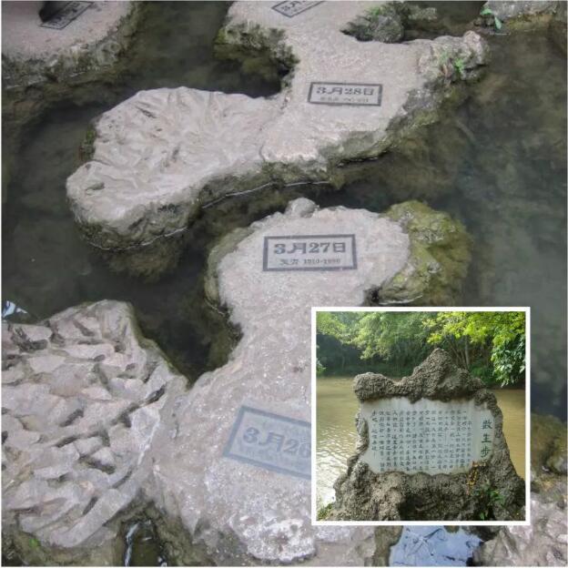 一块石头是一步,一步是一天,总共365块形态各异的石头蜿蜒在水中,正好是一年,人人都有份。人在景中行,就好似在画中游,边行边数石上的日期,找到自己出生的那一块,就是自己的“生步”了。