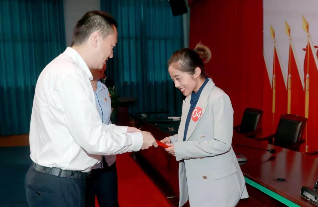(图为:公司党委书记吴声洪向演讲比赛获奖者颁奖)
