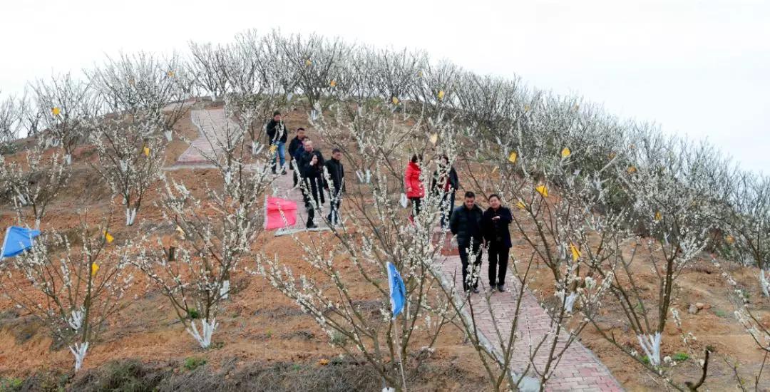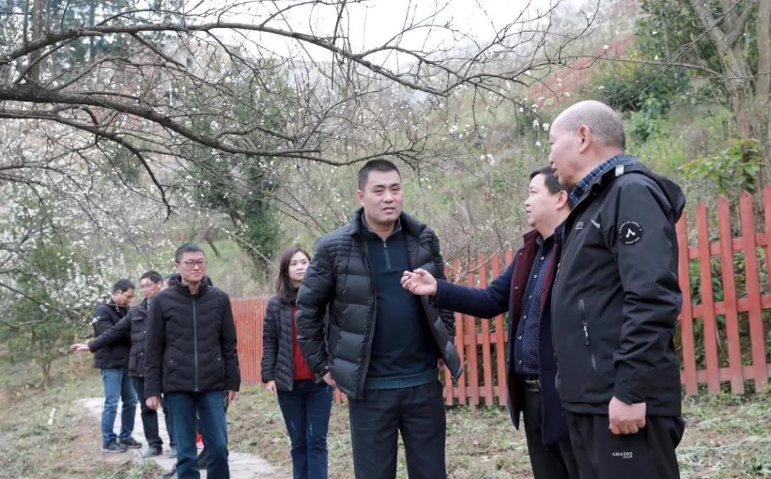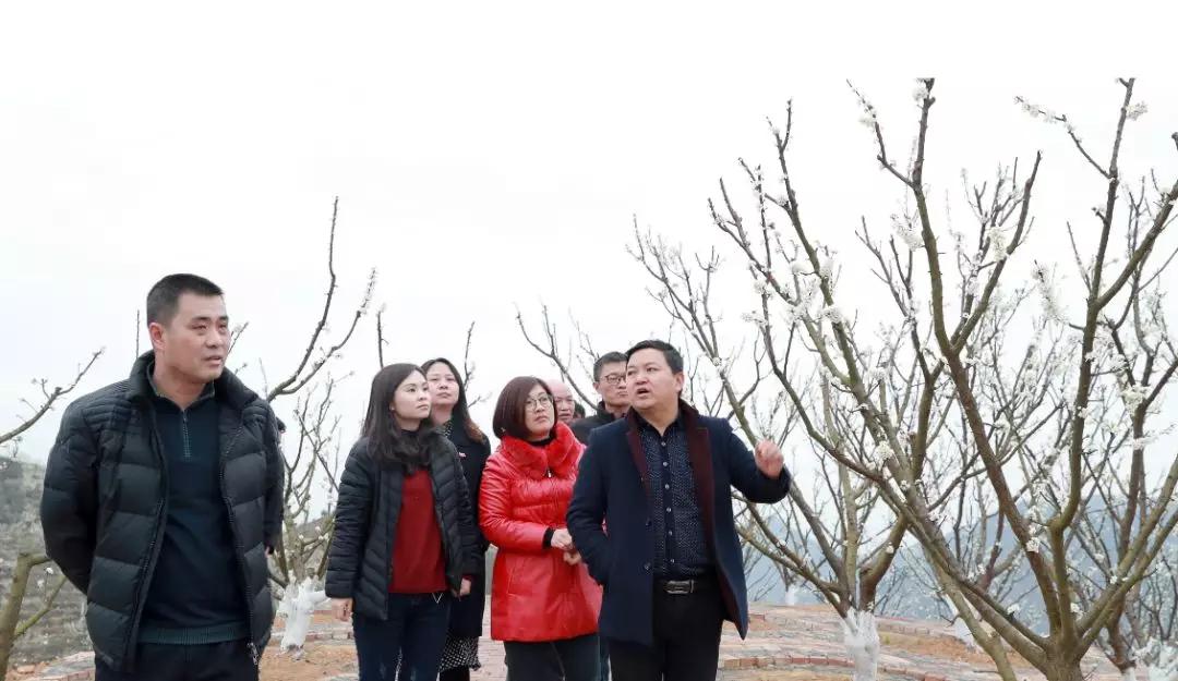 图为:集团公司党委领导与六马镇党委领导实地考察六马镇弄袍村蜂糖李母源地