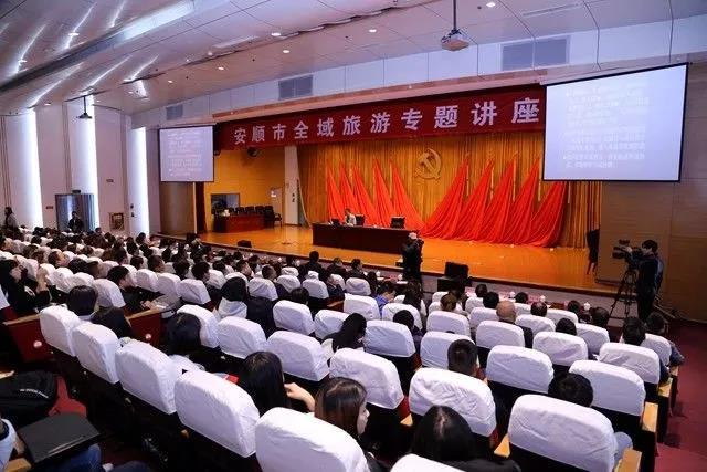 2017年10月17日,被誉为“中国酒店业教父”的中国著名旅游经济和管理专家、旅游研究专家魏小安教授,受市旅发委特邀抵安,在安顺市公安局会议室为全市涉旅工作领导、全市旅游系统工作人员代表共计350余人进行了一场主题为“安宁顺遂,旅游腾飞”的全域专题培训讲座,就安顺旅游产业发展现状及未来趋势进行深度剖析,并为安顺全域旅游规划及产业发展规划带来行业最前沿的发展理念。安顺市委副书记、市长陈训华出席并主持,市人大副主任王猛舟,副市长廖晓龙出席讲座。