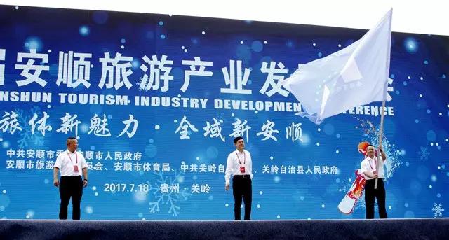 安顺市副市长廖晓龙向第五届安顺旅游产业发展大会承办地紫云自治县授旗。