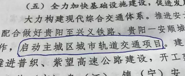 在政府工作报告中提到,今年,将做好贵阳至安顺城际轨道交通项目前期工作,启动主城区城市轨道交通项目。