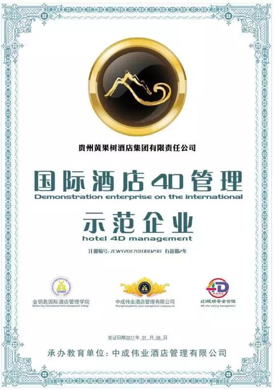 黄果树迎宾馆荣获“国际酒店4D管理”示范企业称号