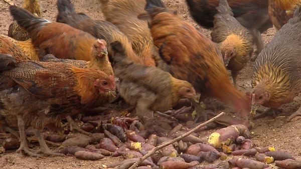 在当地黄色的果子都被称为“黄果”,节目拍摄时正值一年一度的黄果节,游客可以到果园里体验采摘,感受丰收的喜悦。除了采摘黄果外,游客还可以参加抓鸡比赛。不过这鸡可是大有来头呢,它散养在林下空间,每天奔走于田间地头,练就一身好体格,故得名“跑步鸡”。