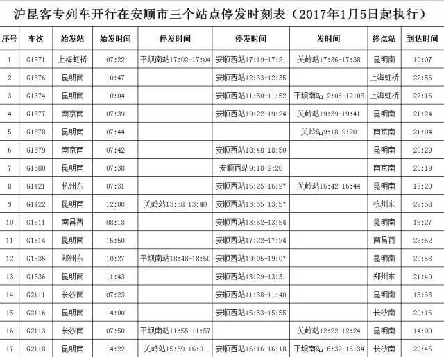 1月5日起,铁路部门将实施新的运行图。长三角地区至昆明将首发高铁动车。这也意味着,明天起,安顺人可乘坐高铁前往长三角地区了。