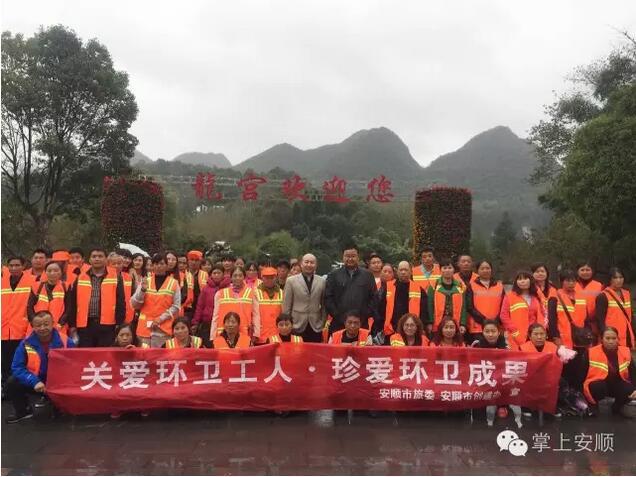 据了解,时值全市积极打造旅游井喷式发展,环卫工人在工作中为城市形象付出辛劳汗水,助力我市良好旅游形象的树立。为感谢环卫工人的辛勤工作,弘扬社会正能量,由市旅委倡议,在全市旅游行业开展“关爱环卫工人·珍惜环卫成果”主题活动。当天,来自西秀区、开发区的100名一线环卫工人免费游览黄果树和龙宫景区,身着荧光橘色工作服的环卫工人们集体出行,在景区间成为一道别样的风景线。