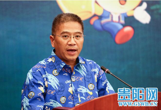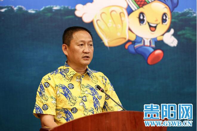 黄果树旅游集团股份有限公司总经理廖志勇介绍啤酒节参展美酒美食和文娱节目安排