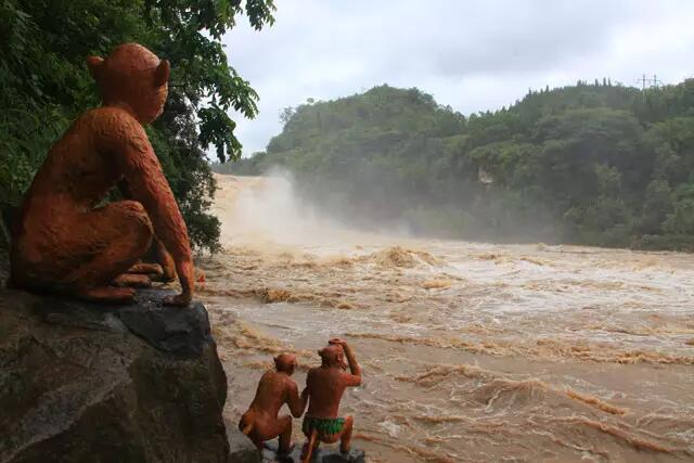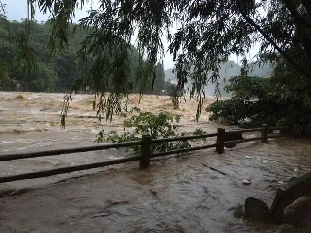 由于水大,为确保安全,黄果树景区暂时关闭陡坡塘下端游道、大瀑布下端观瀑台、水帘洞、天星桥下半程,待水位下降再做调整。去年最大值达650立方米每秒,出现在8月份,相比去年6月4日涨水(540立方米每秒)今年已达到700立方米每秒。