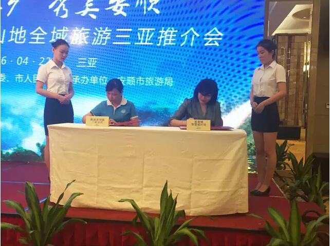 冬天到三亚享受阳光,夏天到安顺感受清凉,4月22日,我市与海南省三亚签约,山海联手优势互补,上演气候生态旅游"双城记",三亚冬季阳光沙滩与安顺夏季山地清凉携手走市场。安顺大黄果树山地全域旅游推介会也在海南省三亚市举行,市委副书记胡吉宏出席活动。