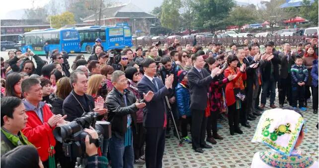 随后,省旅游局局长李三旗,安顺市市委常委、市委组织部部长、黄果树风景名胜区党工委书记朱桂云,安顺市旅游局局长顾新蔚与黄果树旅游集团股份有限公司领导一同慰问了大瀑布景区游客服务中心、公安交警联合执法队及酒店集团员工并出席黄果树景区2016年春节开彩门活动。