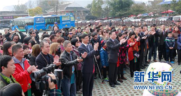 2月8日,大年初一,贵州省安顺市黄果树风景名胜区举行了以“金猴跳新春·鸿运黄果树”为主题的新春开彩门纳福活动。贵州省旅游局局长李三旗出席活动并开启“彩门”。