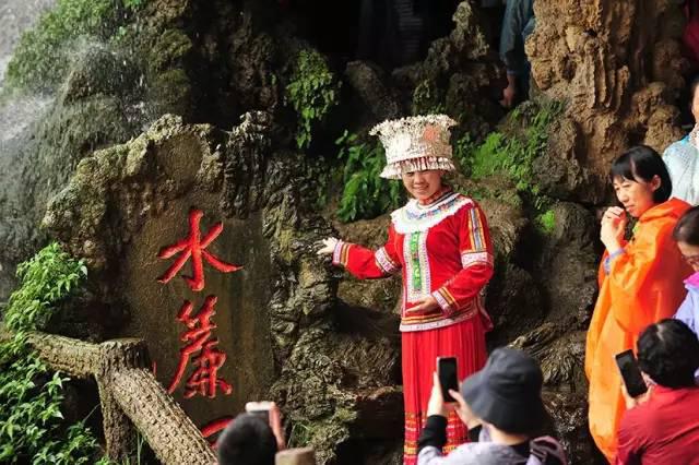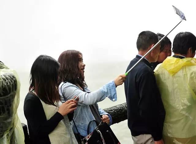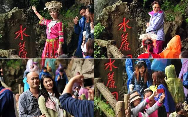 ——出了水帘洞,身后便是滚滚瀑水,不少游客都在这里拍照留念,一部分游客带了自拍神器,不仅是年轻人,一些中老年人也能熟练使用自拍杆,在“咔擦”声中,定格一张张可爱的笑脸。