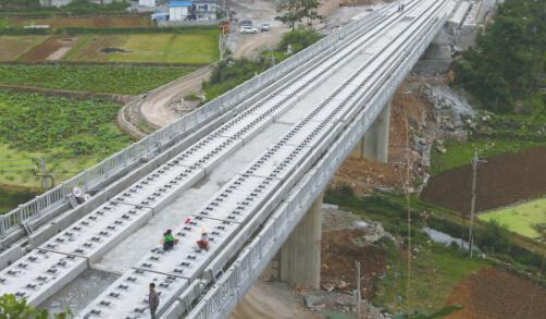 安顺开发区幺铺镇境内,大山之中的河上堡隧道出口的大桥雏形。卢维摄