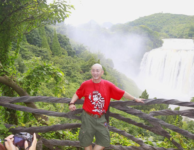六小龄童在大瀑布前留影