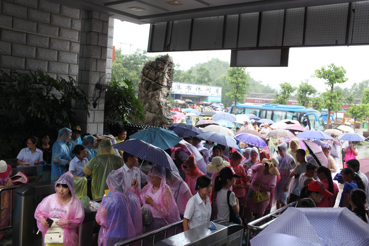 伴随着气温的不断攀升,黄果树景区的游客也是直线上升,外地游客纷至沓来,省内游客暑期出游热情一浪高过一浪。7月25日-26日,黄果树景区每天平均接待游客15000人左右,创下了暑期接待游客人数的一个小高峰。大瀑布排队等观光车大雨不减游客出游