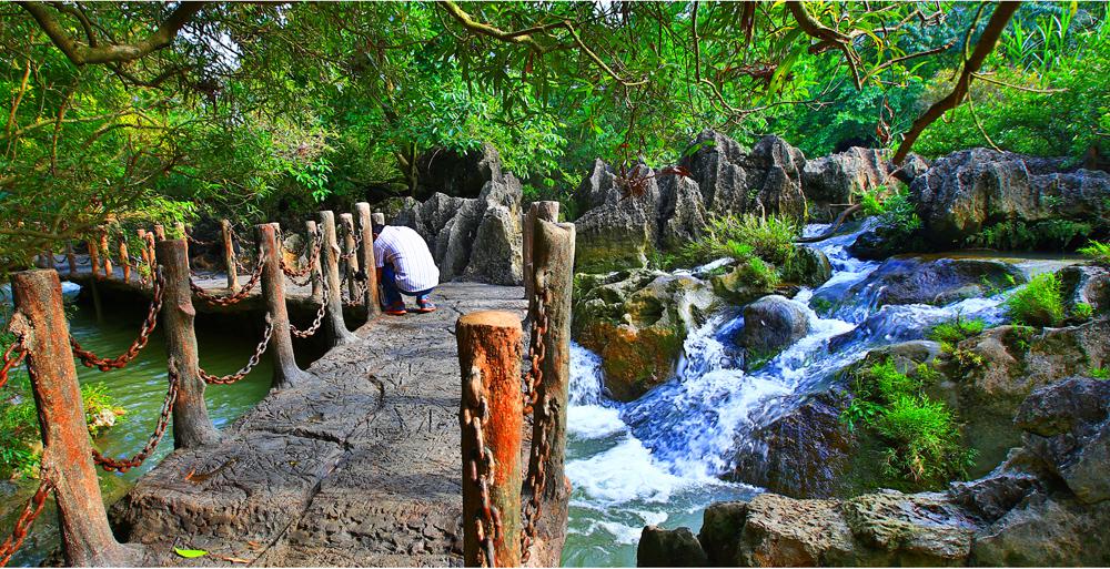 沿小道游览,抬头是景,低头是景,前后左右处处皆成景,仿佛到了天上的仙境,地下的迷宫。其著名的景观有:数生步、响水洞、天水一线、空灵、仙鹰回巢、八面景、天星照影、长青峡、大肚难过、歪梳石、寻根岩、鸳鸯藤、美女榕、人生百态、天星湖等形态十分毕真的天然景观让人沉醉不已,啧啧赞叹……