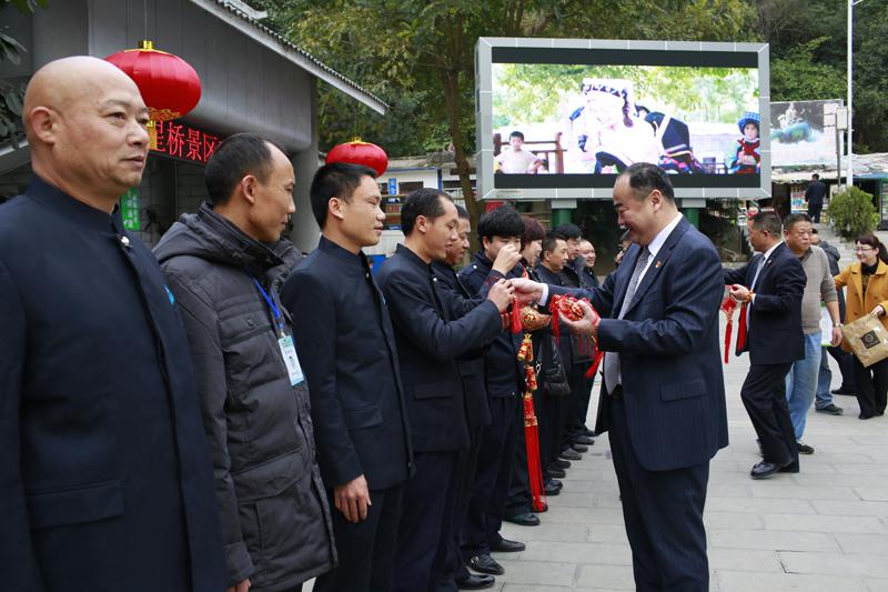 为确保职工和游客在景区过上一个安全祥和春节,黄果树管委会、集团公司主要领导亲临一线,亲切慰问一线职工、困难党员,给他们送去最温暖祝福和问候。