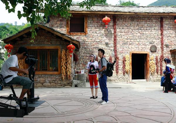 黄果树微电影《寻•美》于2013年8月1日在黄果树景区滑石哨村正式开机!此部微电影片长15分钟,男、女主角都是浙江省知名的演员,阿桑爷爷一角更是邀请了我省著名的国家一级演员井立民老师担任。该电影主要讲述了摄影师肖深和美丽的布依族姑娘阿桑在黄果树景区邂逅爱情的故事,该片中利用男女主角的爱情故事,把我景区的各个景点的美景、美食、民俗文化串联起来,通过电影的镜头,更好的展现了我景区多元化的旅游资源。