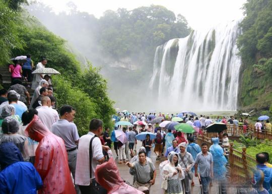 据黄果树旅游集团股份公司经理陈诚介绍,黄果树瀑布丰水期流量在“15个”左右,目前维持在“7个”左右,对旅游观光基本没有影响。由于景区气温适宜、植被好,从7月12日开始,景区每天接待都在1万人以上,最高峰时近1.6万人。