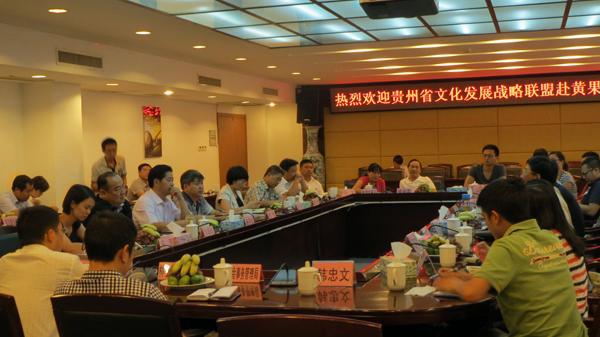 2013年8月2、3日上午,贵州文化发展战略联盟一行14人到黄果树进行为期两天的研究考察,并就黄果树“自然环境科学考察”、黄果树“园林景观规划”进行了座谈。
