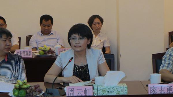 8月2日下午,贵州省文化旅游发展战略合作联盟座谈会在公司三楼小会议室举行。集团公司总经理周云虹主持。黄果树管委会主任杨开华书记、李刚主任,集团公司董事长吴晏明、总经理周云虹,黄果树管委会相关部门领导以及公司高管、相关部门主要负责人参加了此次座谈。