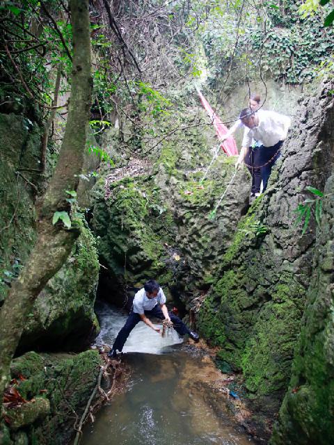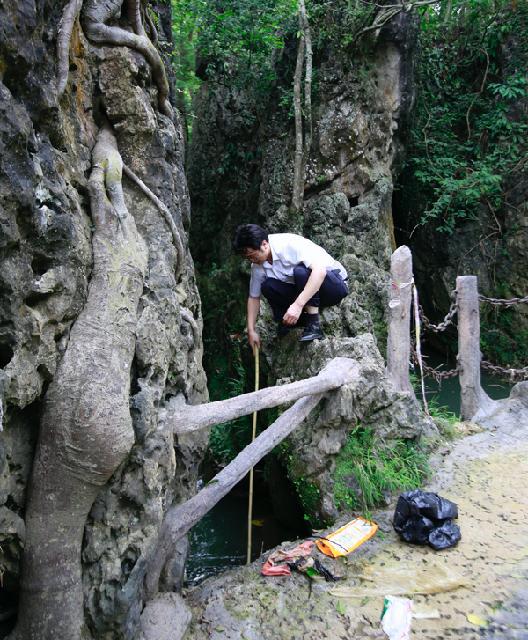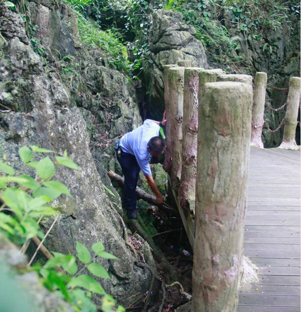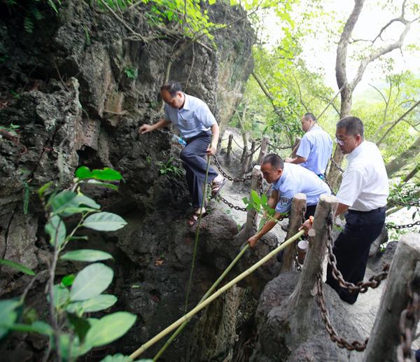 2013年6月30日上午08:00,景区管理公司全体党员、入党积极分子共28人,身着工装,佩戴党徽,手拿工具。在景区管理公司办公楼前整队结合,前往天星桥景区水上石林区,针对雨季到来后,大水从上游冲下来浪渣进行全面清理。