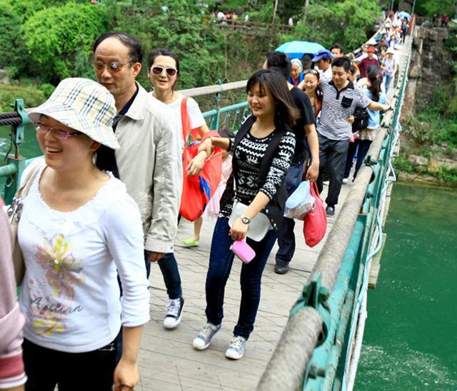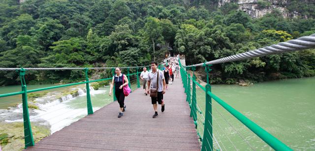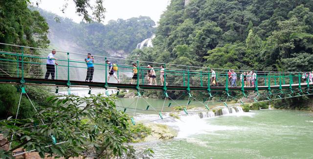 回顾往年旅游的高峰期,黄果树大瀑布下水帘洞出口至索桥段人满为患,排着长队等待过桥,限行30人的索桥输送力极为有限。随着景区旅游人数越来越多,为进一步提高景区服务质量,减少游客的等待时间。景区重建索桥并在旅游高峰期到来前完成通行。