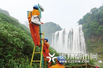 镇宁供电局工作人员正在黄果树瀑布检修线路。