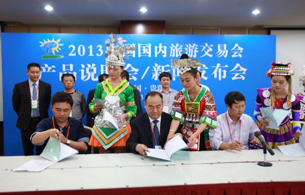 2013年4月19日下午4点,贵州精品景区联盟(黄果树、荔波、西江)发布会在贵阳国际展览中心举行。会上,省旅游局领导、三大景区相关领导及负责人,还有,人民网、凤凰网、新浪网、腾讯网、成都商报、成都电台、云南电视台、贵州电视台、贵州日报、贵州都市报、黔中早报、贵阳晚报、安顺电视台、安顺日报、近百家地接社和组团社等共200余人参加会议。