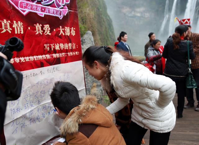2月14日情人节当天,黄果树风景名胜区推出丰富多彩的活动,情侣游览黄果树将有多种优惠。