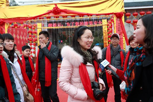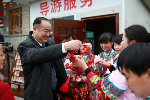 2013年2月10日(大年初一)当天,安顺市委相关领导、黄果树风景名胜区工委书记杨开华、黄果树管委会主任皮永国、黄果树集团公司董事长吴晏明和总经理周云虹分别向游客发表新年的祝福,并希望游客在春节期间充分感受黄果树的“年味”,高兴而来,满意而归; 参加活动的还有来自浙江游客,也是2013年黄果树景区在新年迎接的第一个旅游团队,“新春第一团”游客代表在景区领导的邀请下,就着传统而又热情激扬的新年民乐声,共同开启了“2013年黄果树景区迎宾大彩(财)门”,标志着“2013年黄果树风景名胜区春节布依文化活动周”正式启动,也标准着黄果树新年旅游事业的正式开启。据悉,当天到达黄果树“新春第一团”的游客每人将获得集团公司精心准备具有当地特色、年味十足的 “黄果树新春大礼包”和“接财纳福红包”。