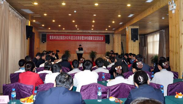 2013年1月10日下午15时,黄果树酒店集团2012年度总结表彰暨2013迎新工作交流联谊会在屯堡酒店隆重召开。酒店集团领导班子、部门主管以上管理人员及优秀员工参加了会议。