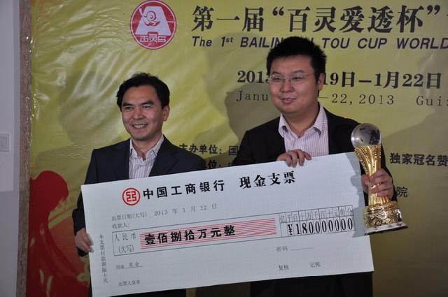 2013年1月19日,由国际围棋联盟和贵州省人民政府主办,中国围棋协会和贵州省体育局承办,日本棋院和韩国棋院协办,贵州百灵企业集团独家冠名赞助的第一届“百灵爱透杯”世界围棋公开赛五番棋决赛第3局在黄果树屯堡酒店开战,中国年轻棋手周睿羊以3比0的总比分击败对手陈耀烨,斩获首届“百灵爱透杯”冠军,成为中国第九位世界冠军。贵州安顺市委书记陈坚和贵州百灵药业集团董事长姜伟为冠军周睿羊颁奖。