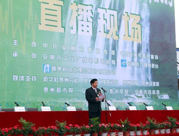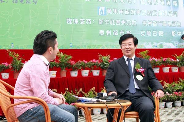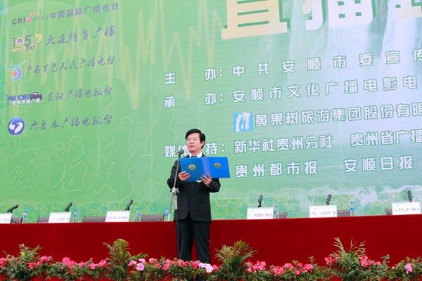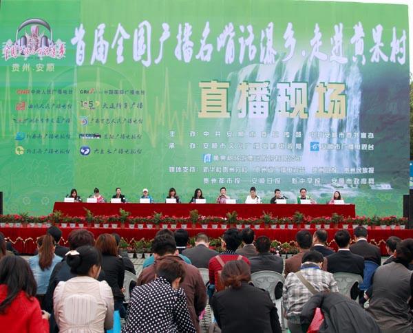 名嘴话瀑乡活动 现场 安顺市委副书记龚喜祥宣布活动开始 名嘴话瀑乡活动(安顺市委宣传部长杨晓曼讲话) 黄果树风景名胜区工委书记杨开华致辞欢迎词 名嘴话瀑乡活动 (各地名嘴记者采访杨书记) 名嘴话瀑乡活动 (中国国际广播电台活动后采访龚书记) 出席活动领导与全国各地名嘴记者合影留念 名嘴话瀑乡活动 (名嘴记者们活动前畅游黄果树景区)