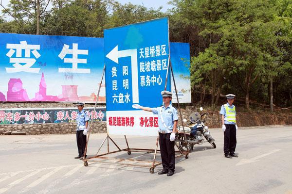 除此以外,集团公司实行全员上班,抽调行政工作人员支持一线工作;在黄果树收费站交警执勤点和交通管制卡点,黄果树交警每天都会对过往车辆进行疏导、对客运车辆和无牌无证车辆进行检查。为到黄果树旅游的游客营造一个良好的旅游环境。