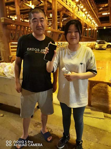10月4日晚,景区工作人员在车辆摆渡点捡到一部智能手机,便立即询问周边群众是否丢失手机,并未找到失主。当发现手机没有设置密码,该工作人员随即用手机拨打了一个几分钟前刚刚通过话的号码。并联系上失主将手机交还失主,为这名游客挽回损失。