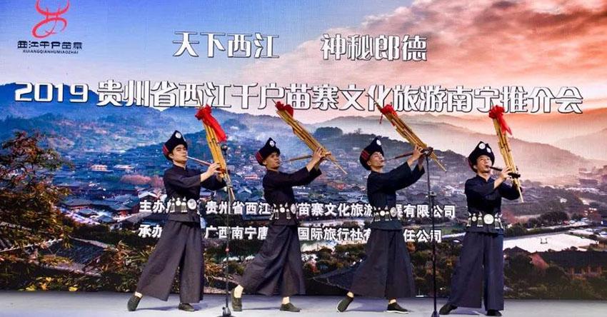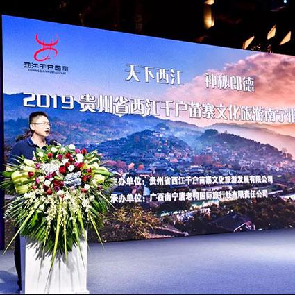 10月11日晚,以“天下西江·神秘郞德”为主题的旅游推介会在广西南宁会展航洋城南广场举行,南宁市旅游协会副会长任尔飞先生为活动致辞,贵州省西江千户苗寨文化旅游发展有限公司副总经理杨庭富先生向南宁的朋友热情分享了贵州西江和郎德自然资源和多彩的民俗文化,推荐了即将上演的苗族实景演出——《西江盛典》,并邀请各方嘉宾和媒体11月1日相聚西江千户苗寨过苗年。