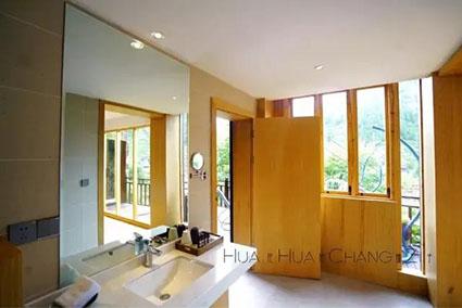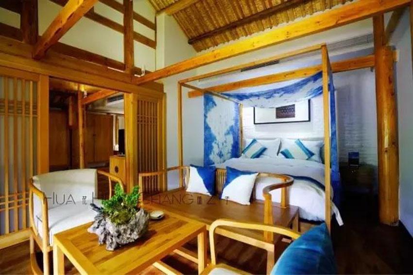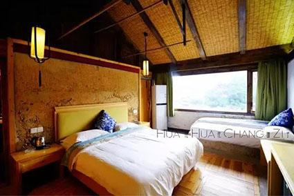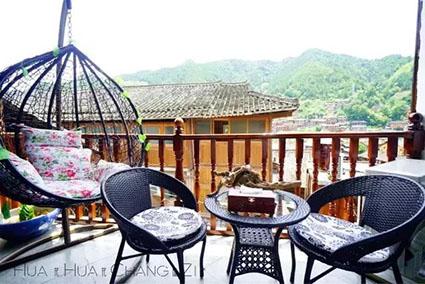 老板喜爱游山玩水游历世界,所以在酒店的设计风格,在保留了苗族文化特色的前提下还融合了东南亚和欧式的建筑风格。