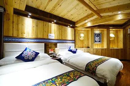 酒店风格设计饱含苗族民族风格,29间房,有7个特大观景房,四星级标准装修配置。在闹市中又远离喧嚣,提供各式早餐冷饮,配有专车到景区门口免费接送游客。